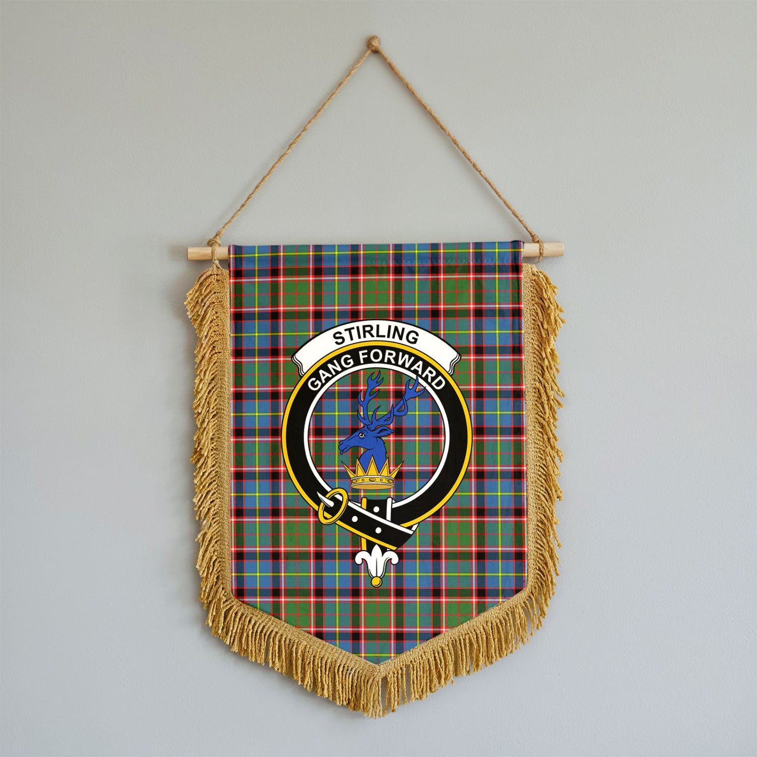 Stirling (of Cadder-Present Chief) Tartan Crest Wall Hanging Banner - Wood Pole