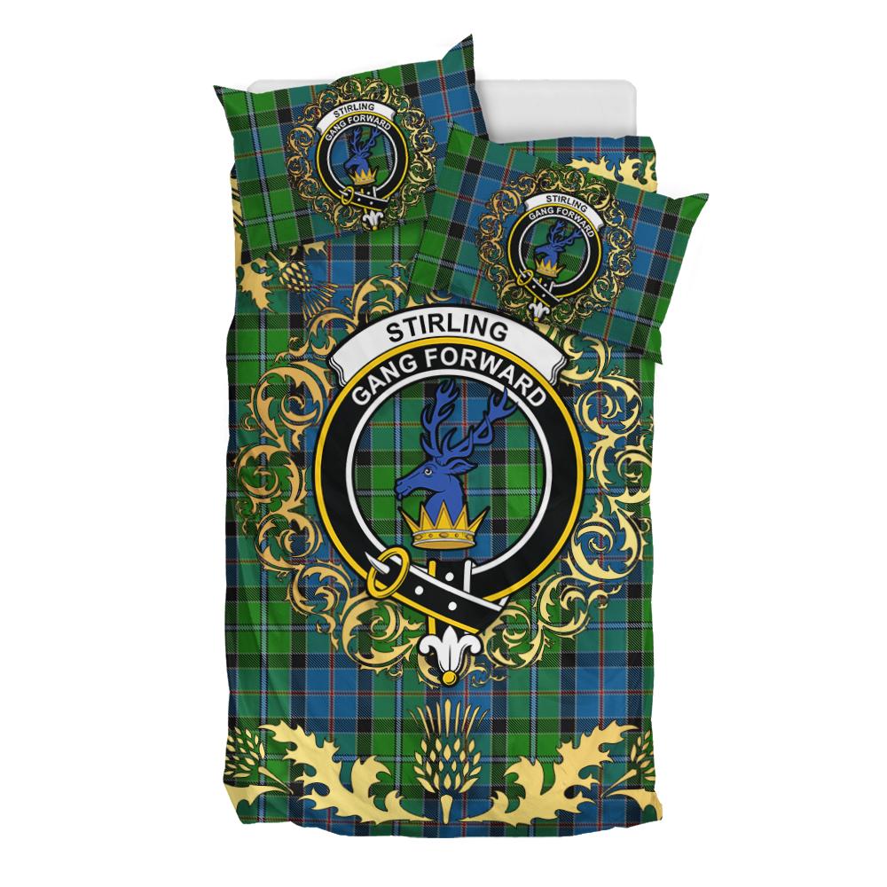 Stirling Tartan Crest Bedding Set - Golden Thistle Style