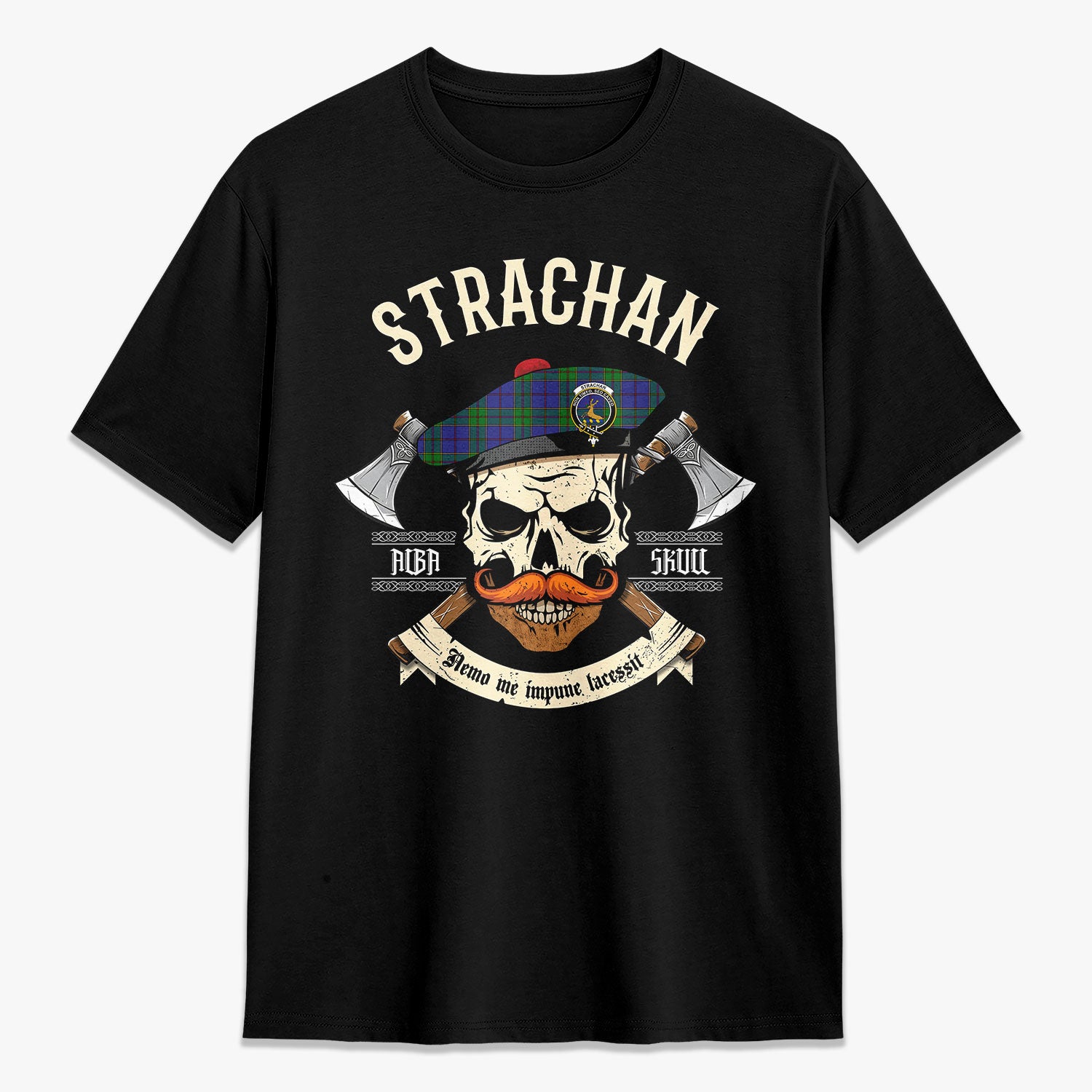 Strachan Tartan Crest 2D T-shirt - Alba Skull Style,