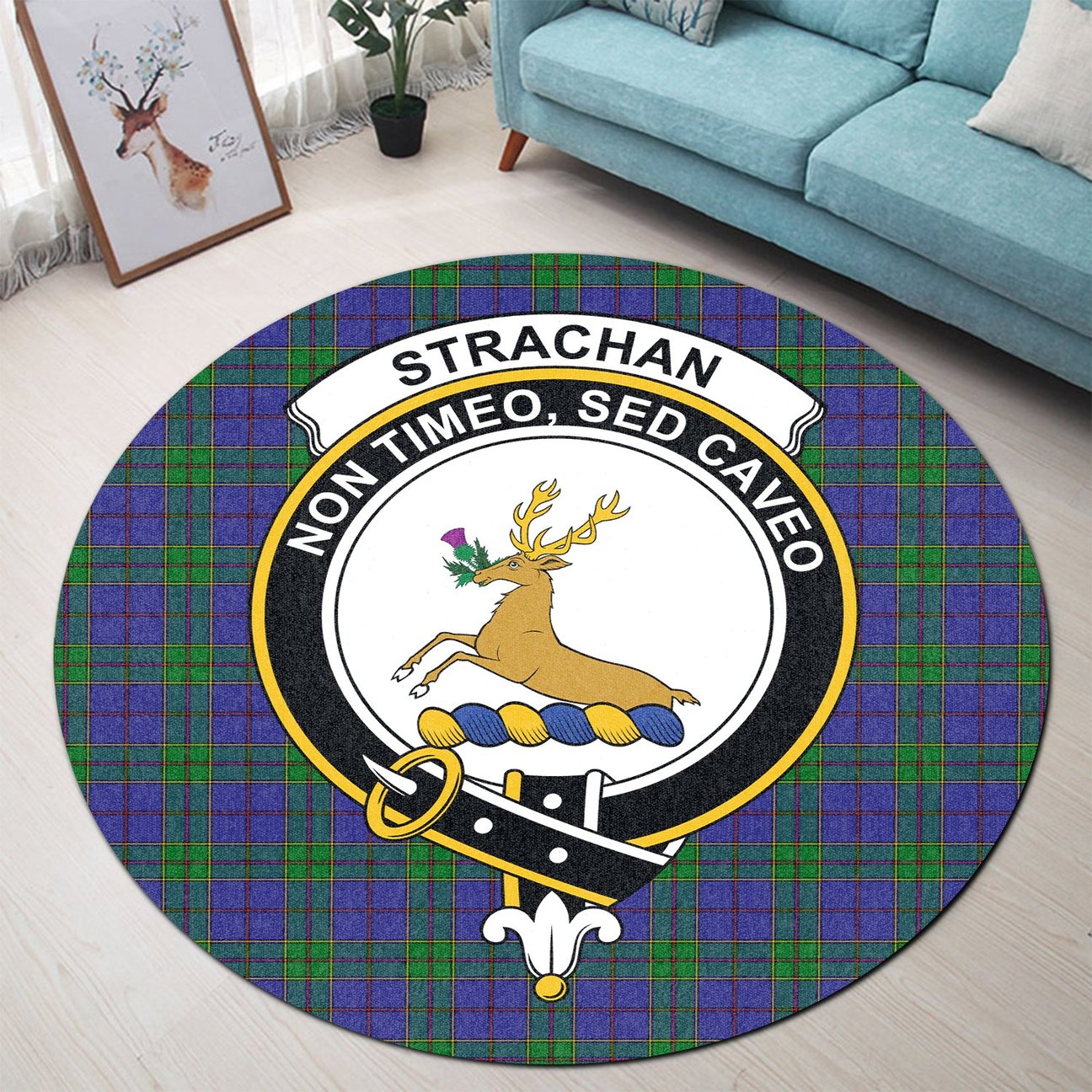 Strachan Tartan Crest Round Rug