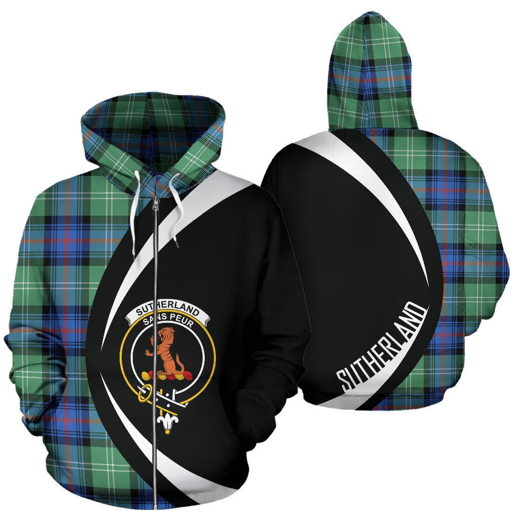 Sutherland Old Ancient Tartan Crest Zipper Hoodie - Circle Style