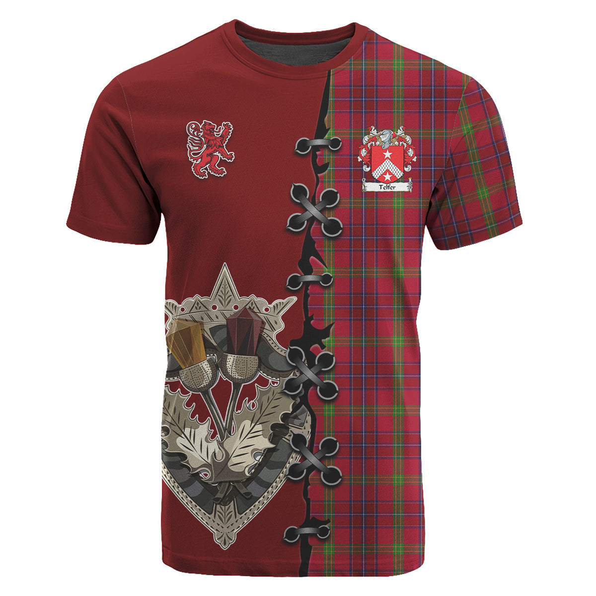 Telfer Tartan T-shirt - Lion Rampant And Celtic Thistle Style