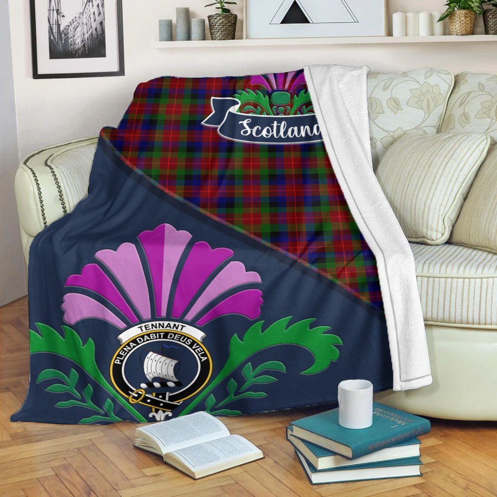 Tennant Tartan Crest Premium Blanket - Thistle Style