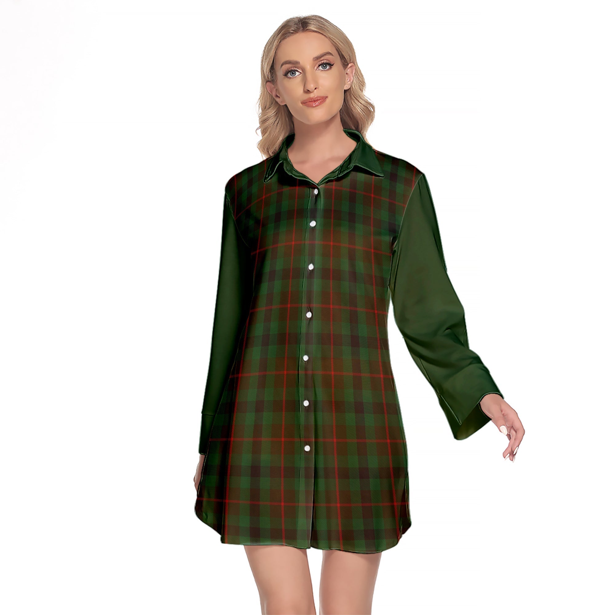 Tennant Tartan Women's Lapel Shirt Dress With Long Sleeve