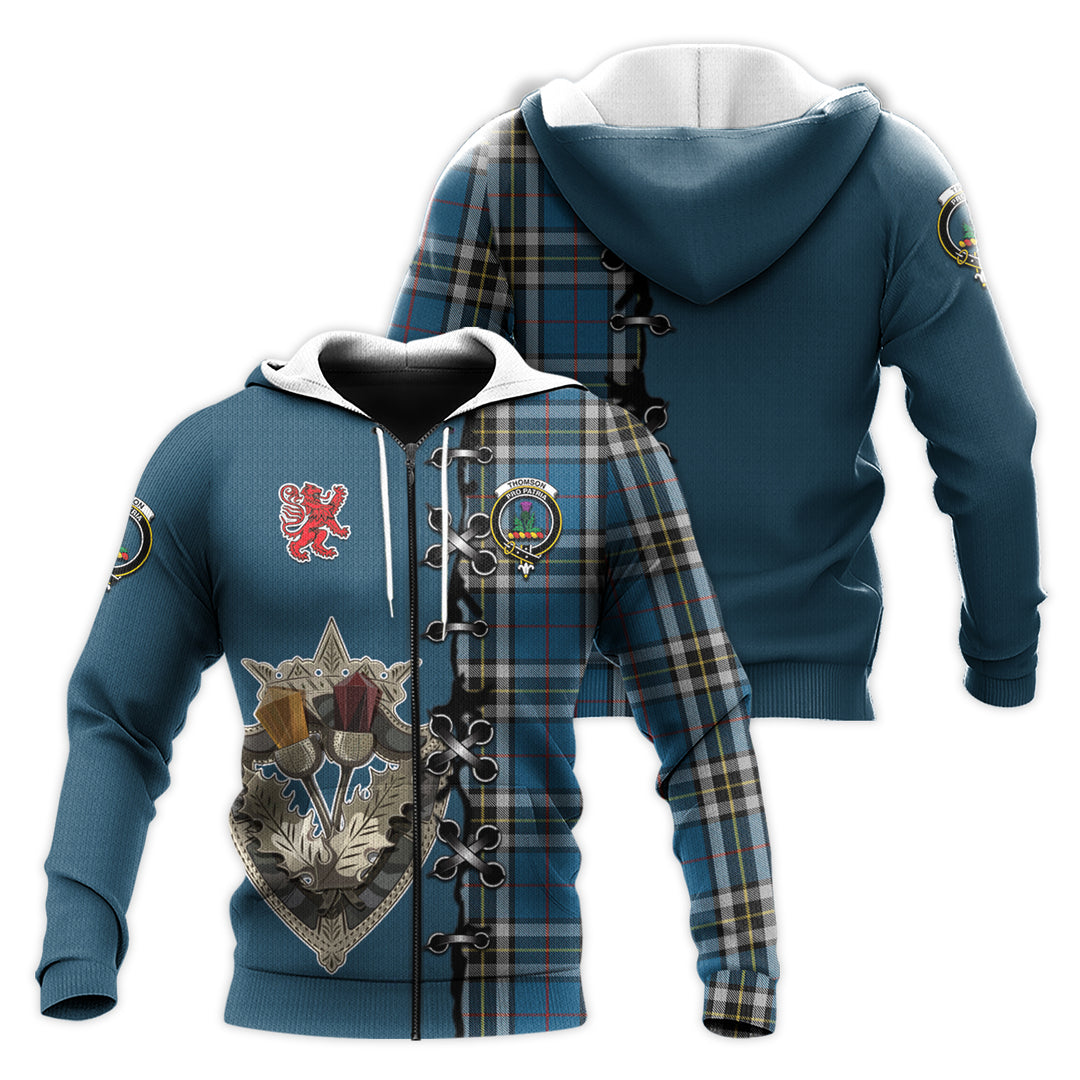 Thomson Dress Blue Tartan Hoodie - Lion Rampant And Celtic Thistle Style