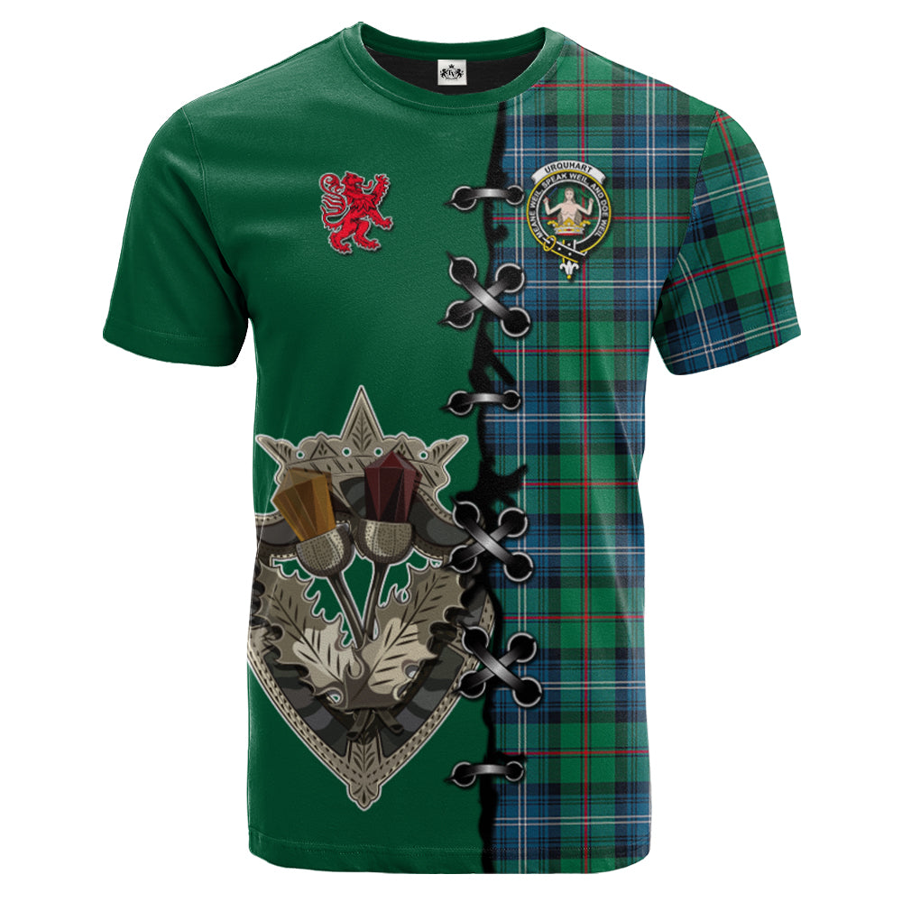 Urquhart Ancient Tartan T-shirt - Lion Rampant And Celtic Thistle Style