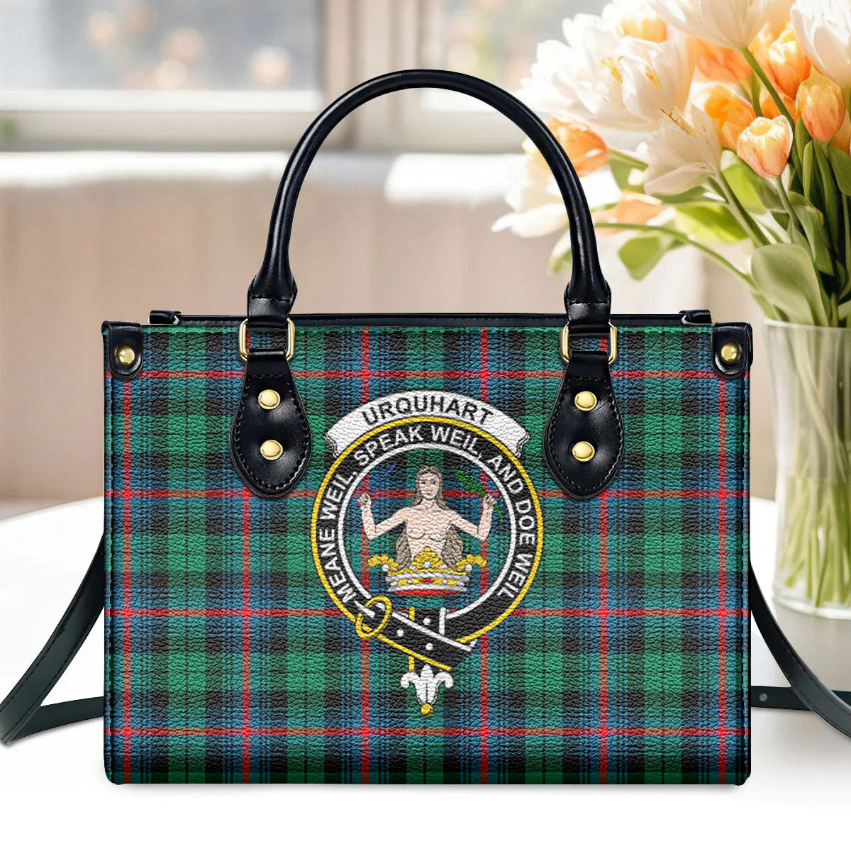 Urquhart Broad Red Ancient Tartan Crest Leather Handbag