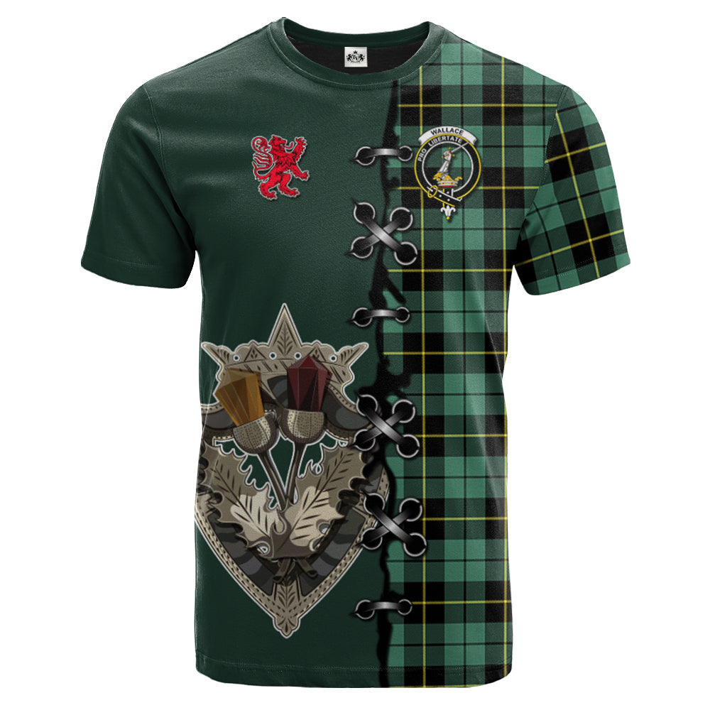 Wallace Hunting Ancient Tartan T-shirt - Lion Rampant And Celtic Thistle Style
