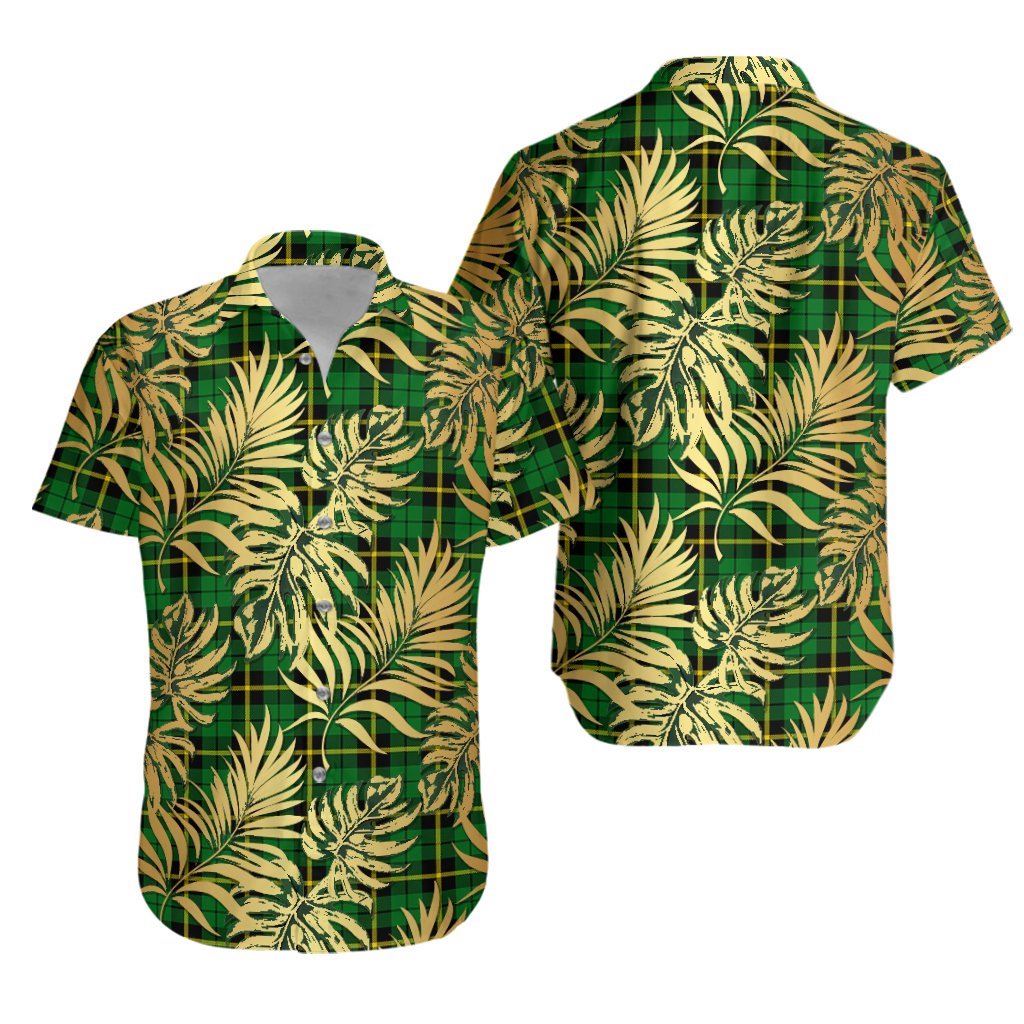 Wallace Hunting Green Tartan Vintage Leaves Hawaiian Shirt