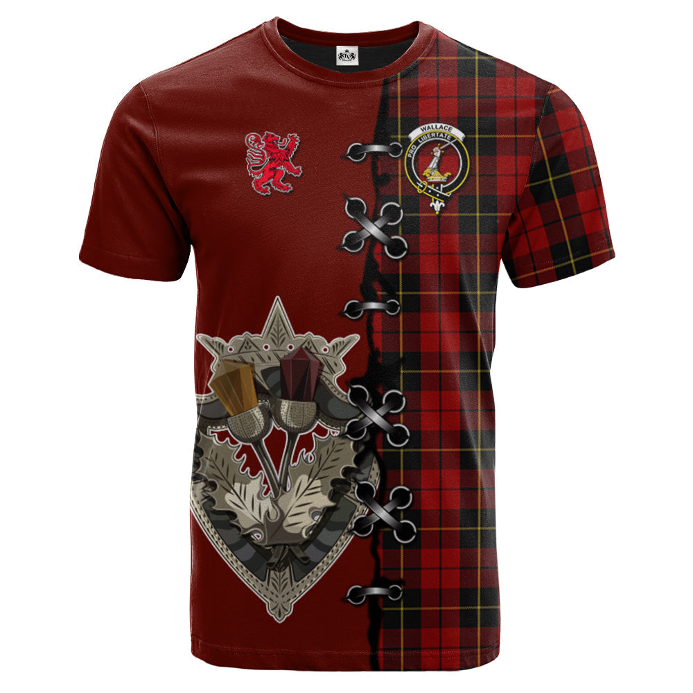 Wallace Tartan T-shirt - Lion Rampant And Celtic Thistle Style