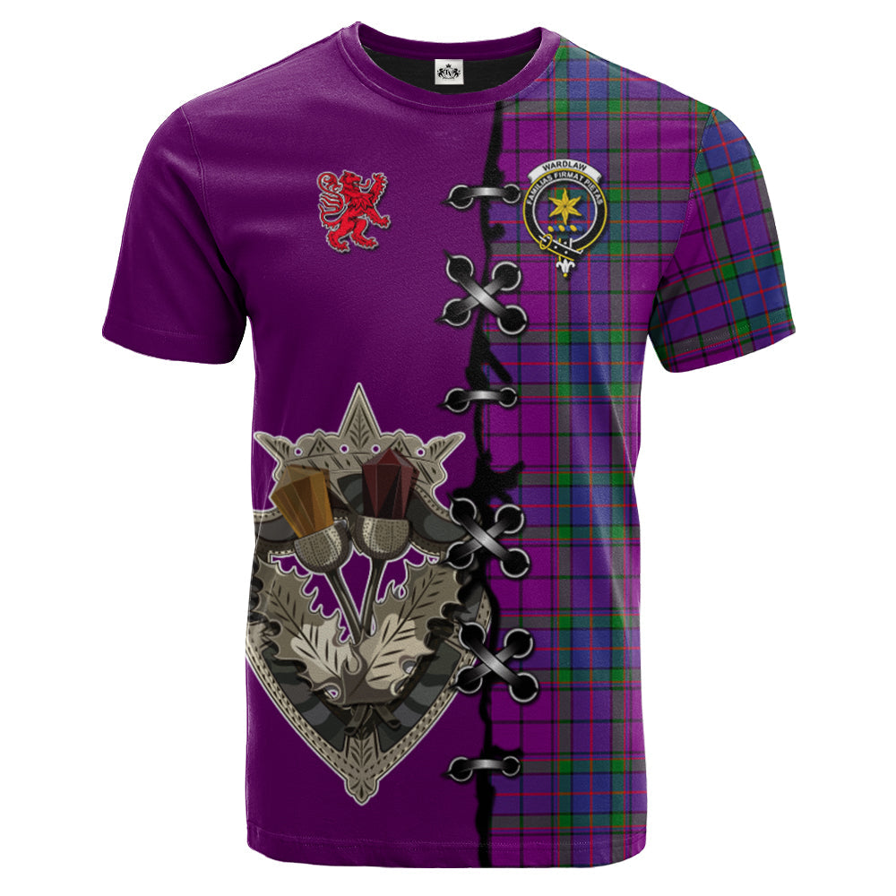Wardlaw Modern Tartan T-shirt - Lion Rampant And Celtic Thistle Style