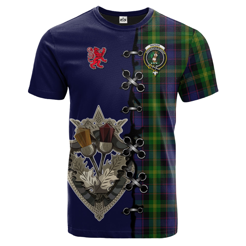 Watson Tartan T-shirt - Lion Rampant And Celtic Thistle Style