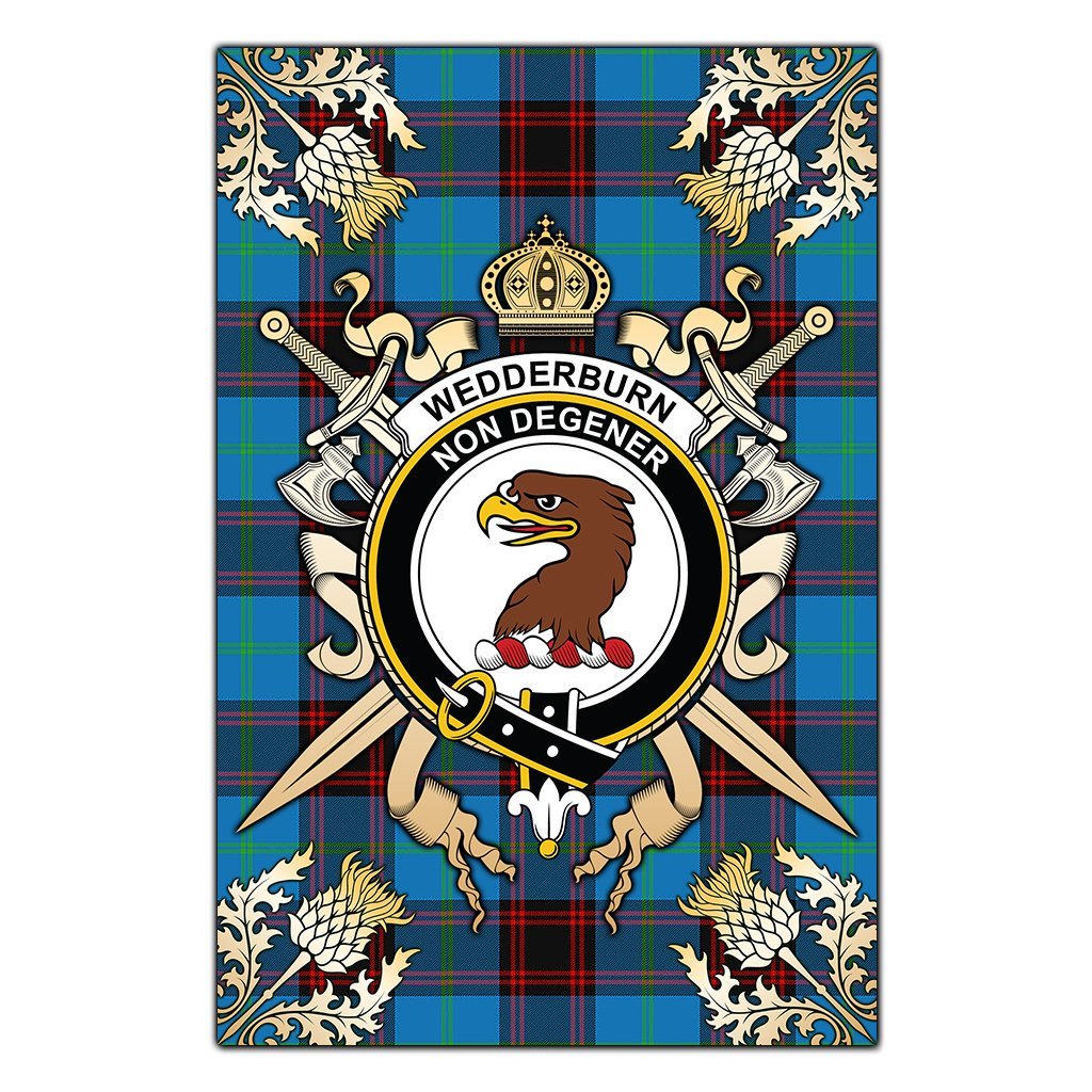 Wedderburn Tartan Crest Black Garden Flag - Gold Thistle Style
