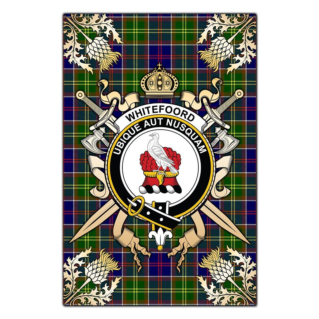 Whitefoord Modern Tartan Crest Black Garden Flag - Gold Thistle Style