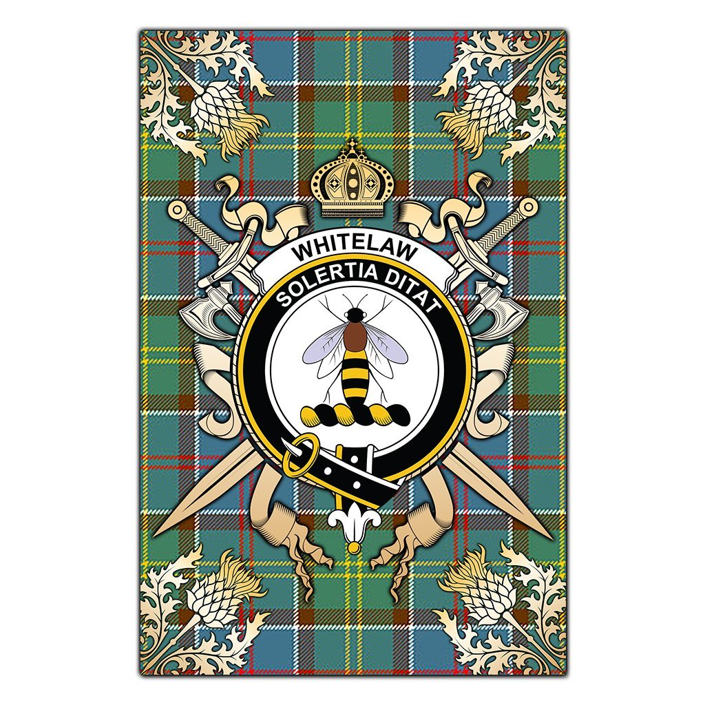 Whitelaw Tartan Crest Black Garden Flag - Gold Thistle Style