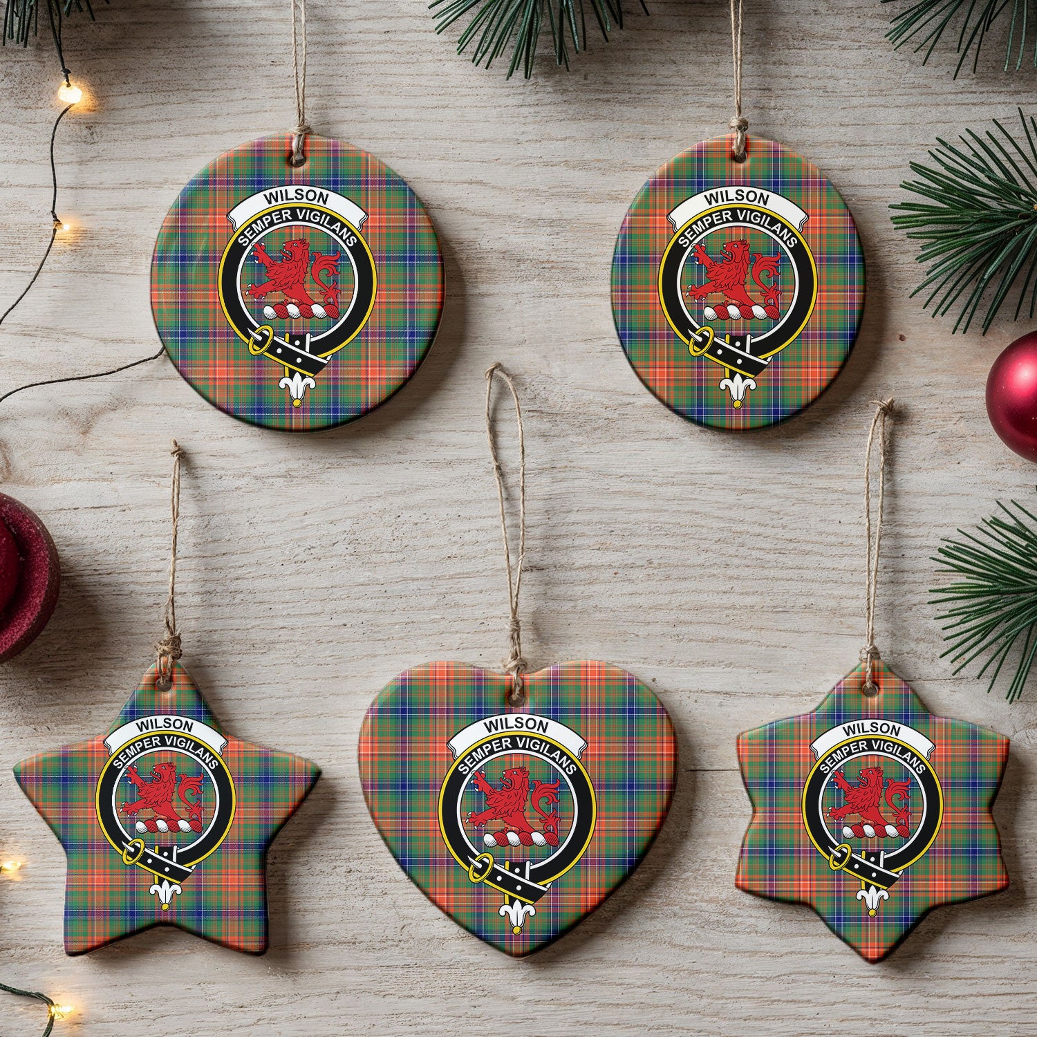 Wilson Ancient Tartan Crest Christmas Ceramic Ornament