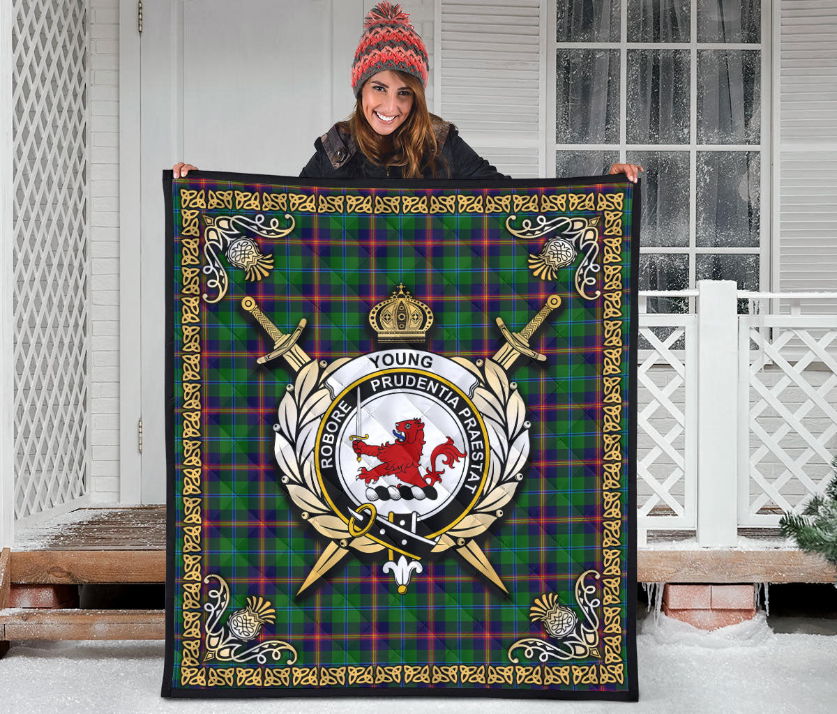 Young Modern Tartan Crest Premium Quilt - Celtic Thistle Style
